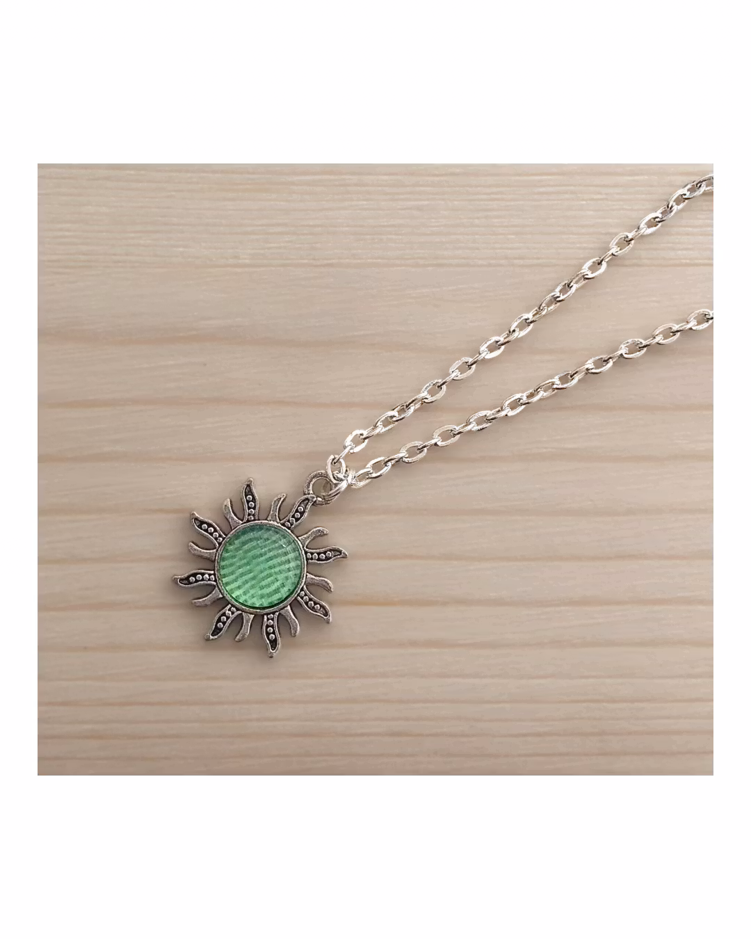 Berlock i antiksilverfärgad zinklegering med dekorativ sten i mitten.