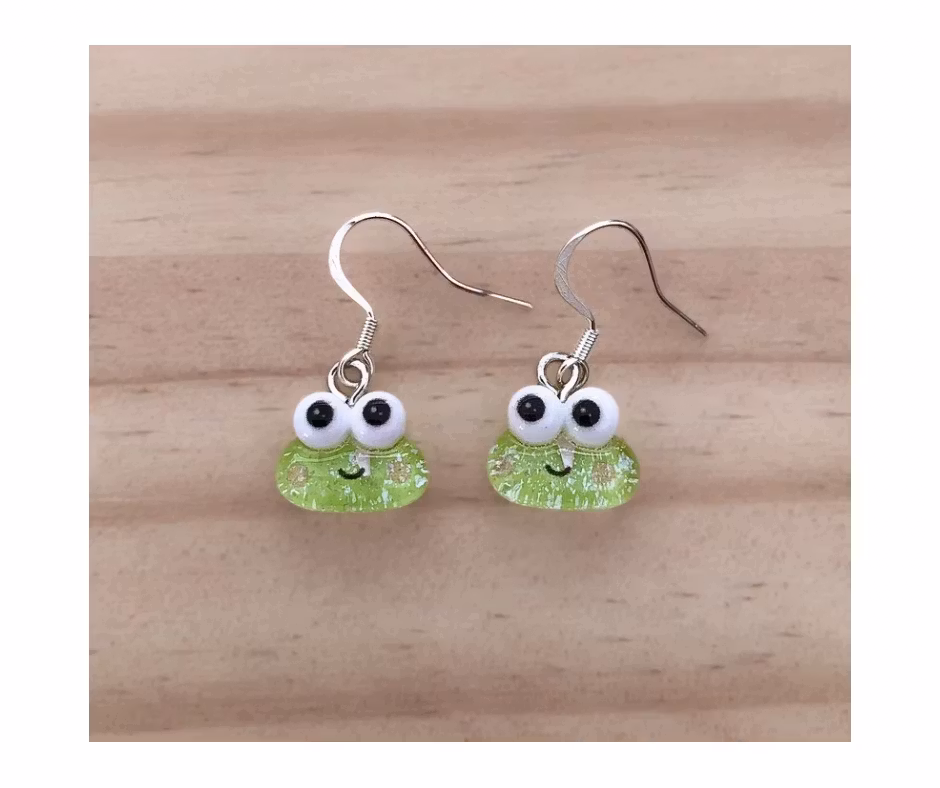 Liten berlock i akryl/uv-harts med ögla i silverfärgad metall. Berlocken är semitransparent med glitter inuti.