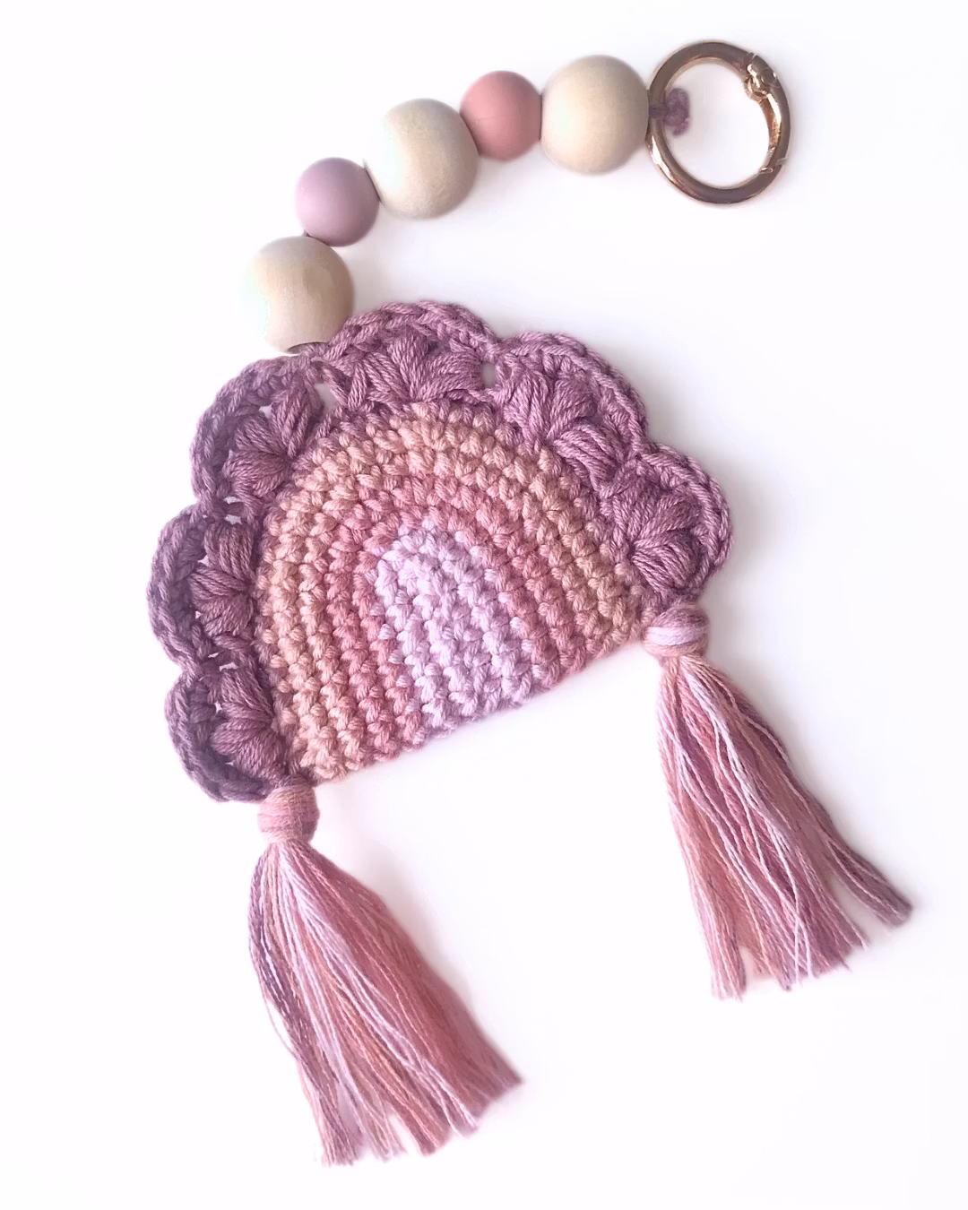 Virkad i bomullsgarn. Giftfria silikon- och träpärlor.