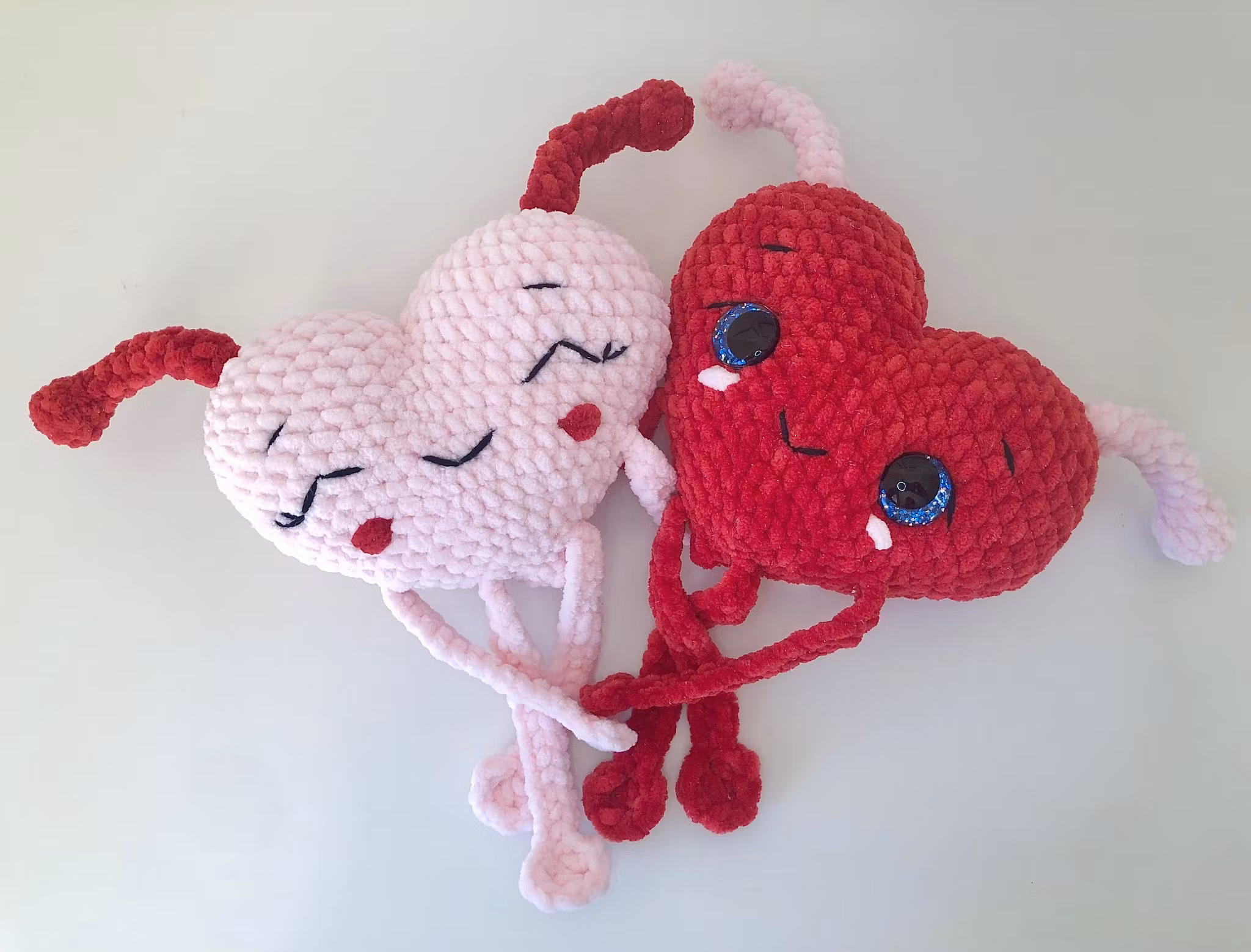 Obs! Använd meddelanderutan i nästa steg för att ange om du vill ha varianten med broderade ögon (som den rosa på bilderna) istället för säkerhetsögon. Lämnas meddelanderutan tom görs hjärtat med säkerhetsögon.