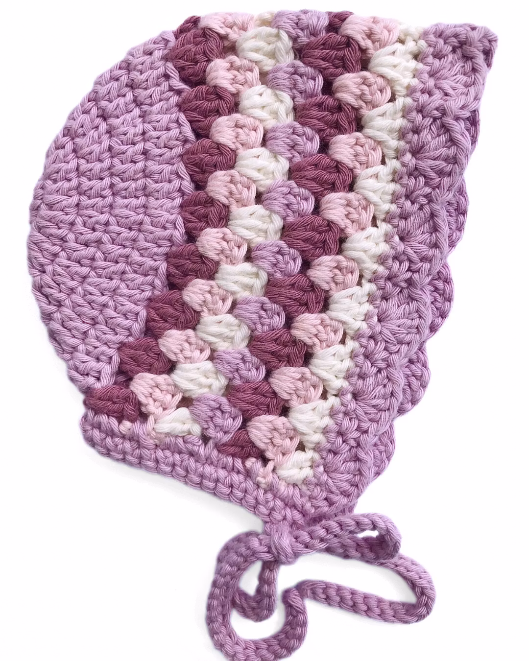 Med band som knyts under hakan. Banden är ca 20 cm långa.