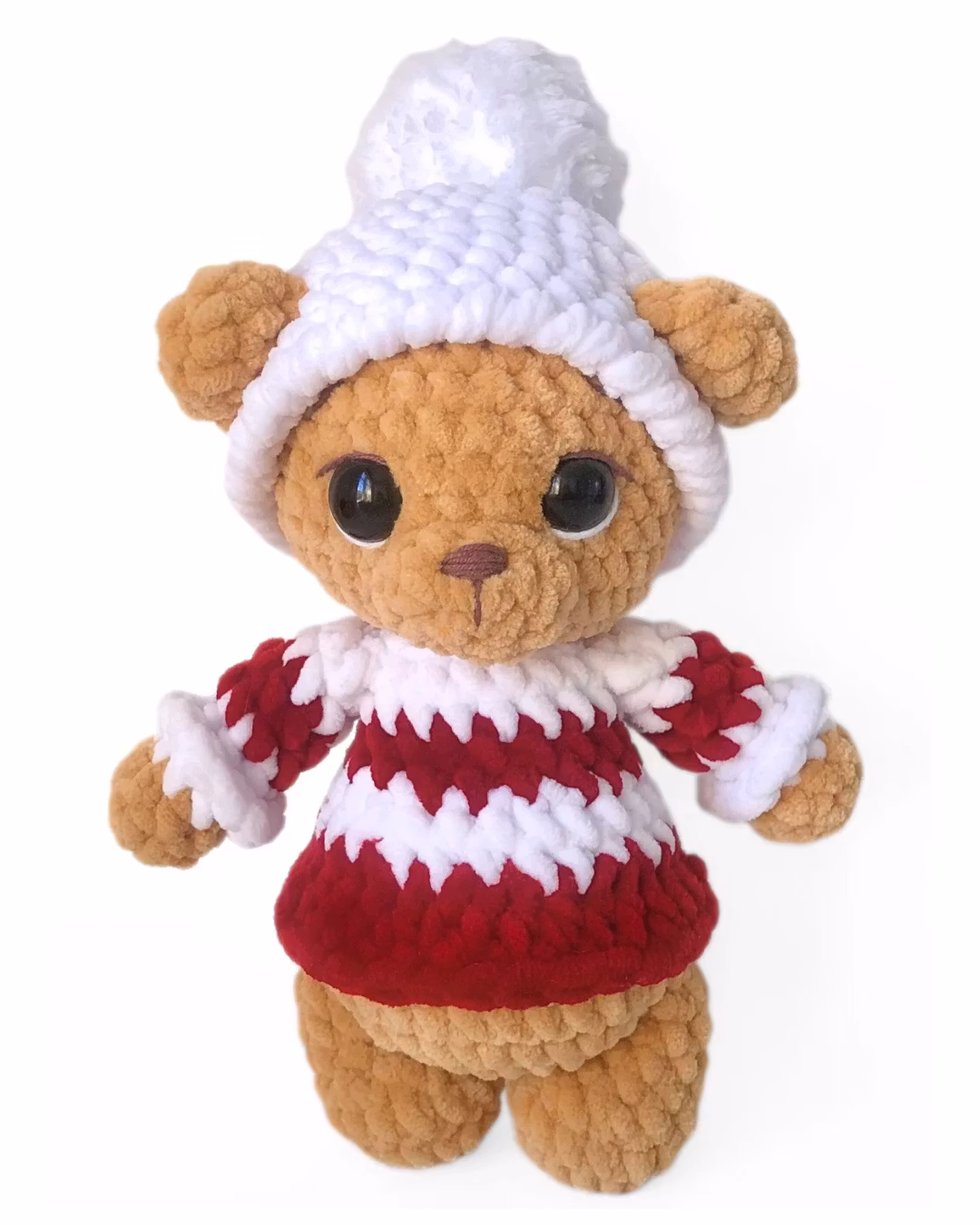 Ange ”broderade ögon” i meddelanderutan i nästa steg (kassan) för att få produkten med broderade ögon istället för säkerhetsögon. (Under menyvalet ”Babyprodukter” kan du se bilder på hur virkade produkter med broderade ögon ser ut)