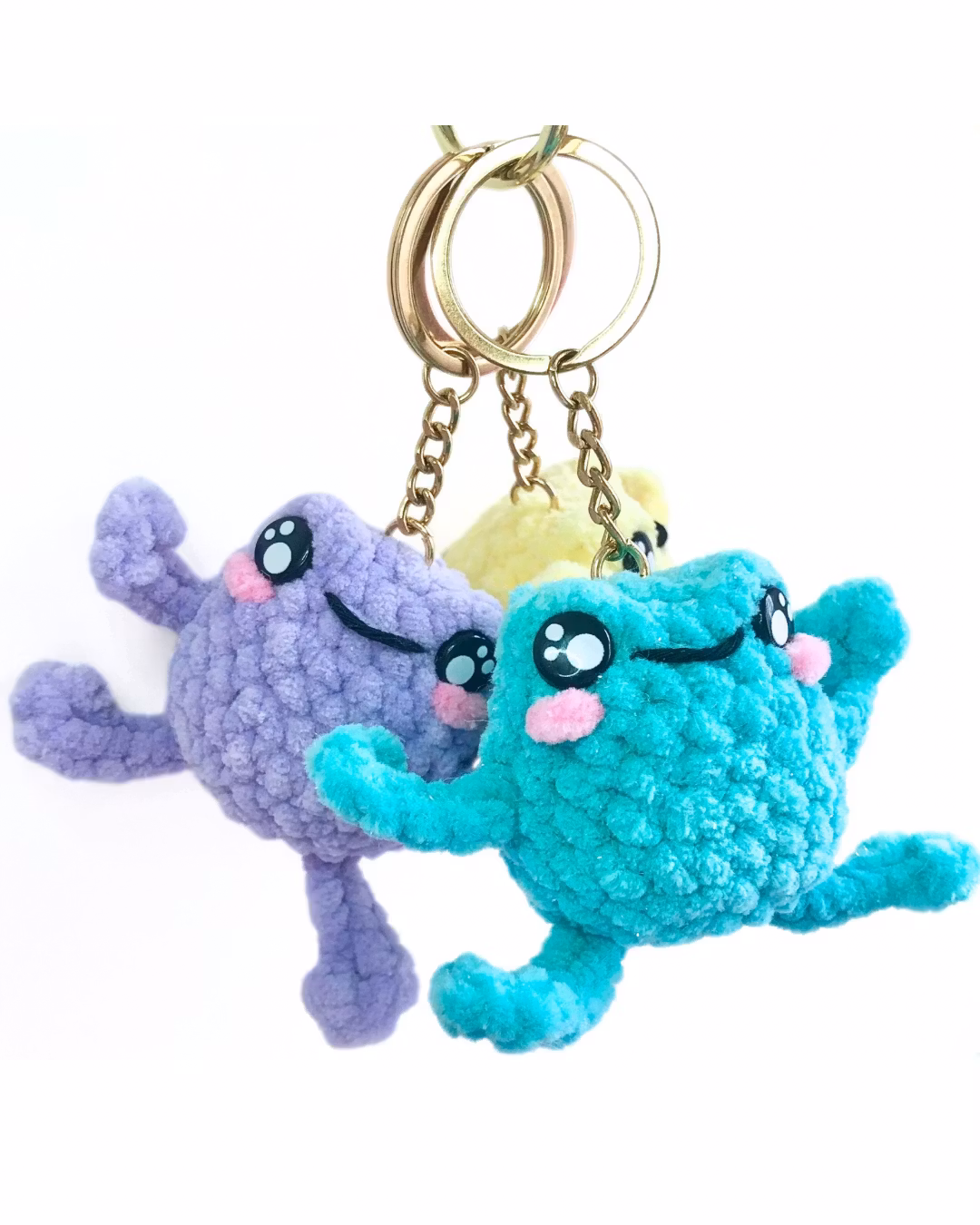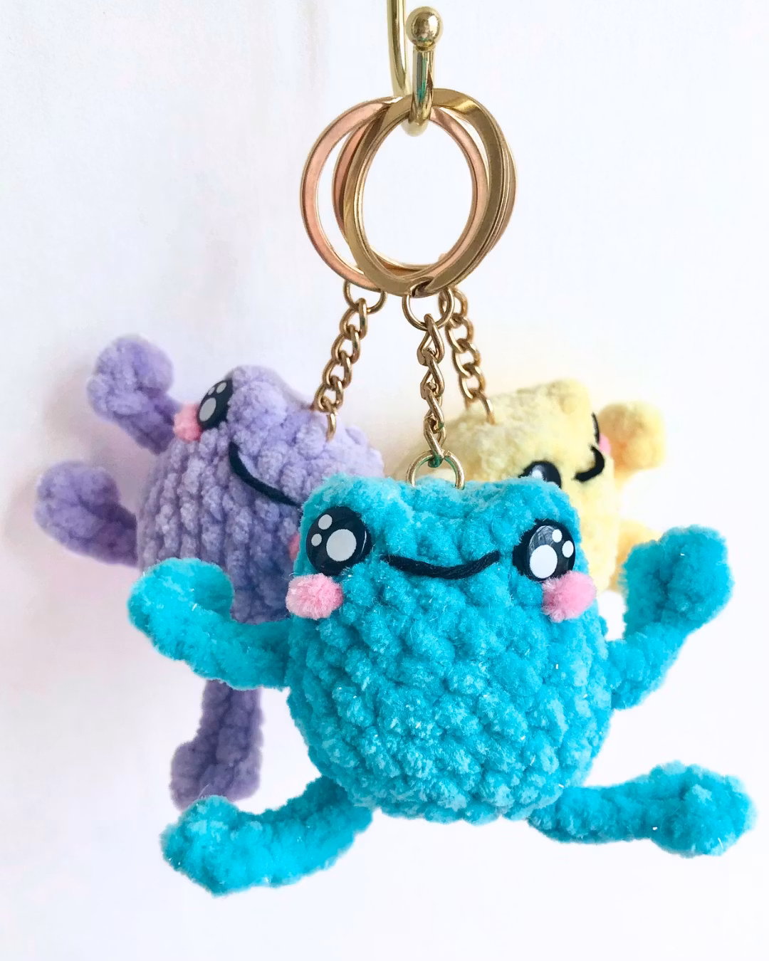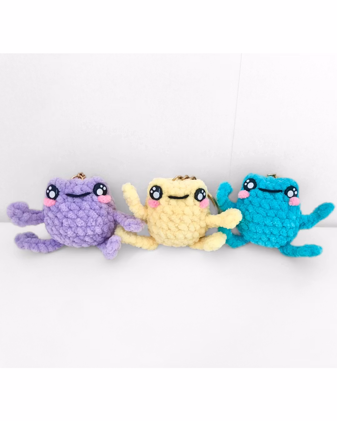Denna produkt är skapad utifrån mitt egna virkmönster ”Keychain Froggy” (finns att köpa som pdf-fil (sv och eng) under kategorin ”Virkmönster”, samt gratis på engelska på min instagram @madde.virkar .