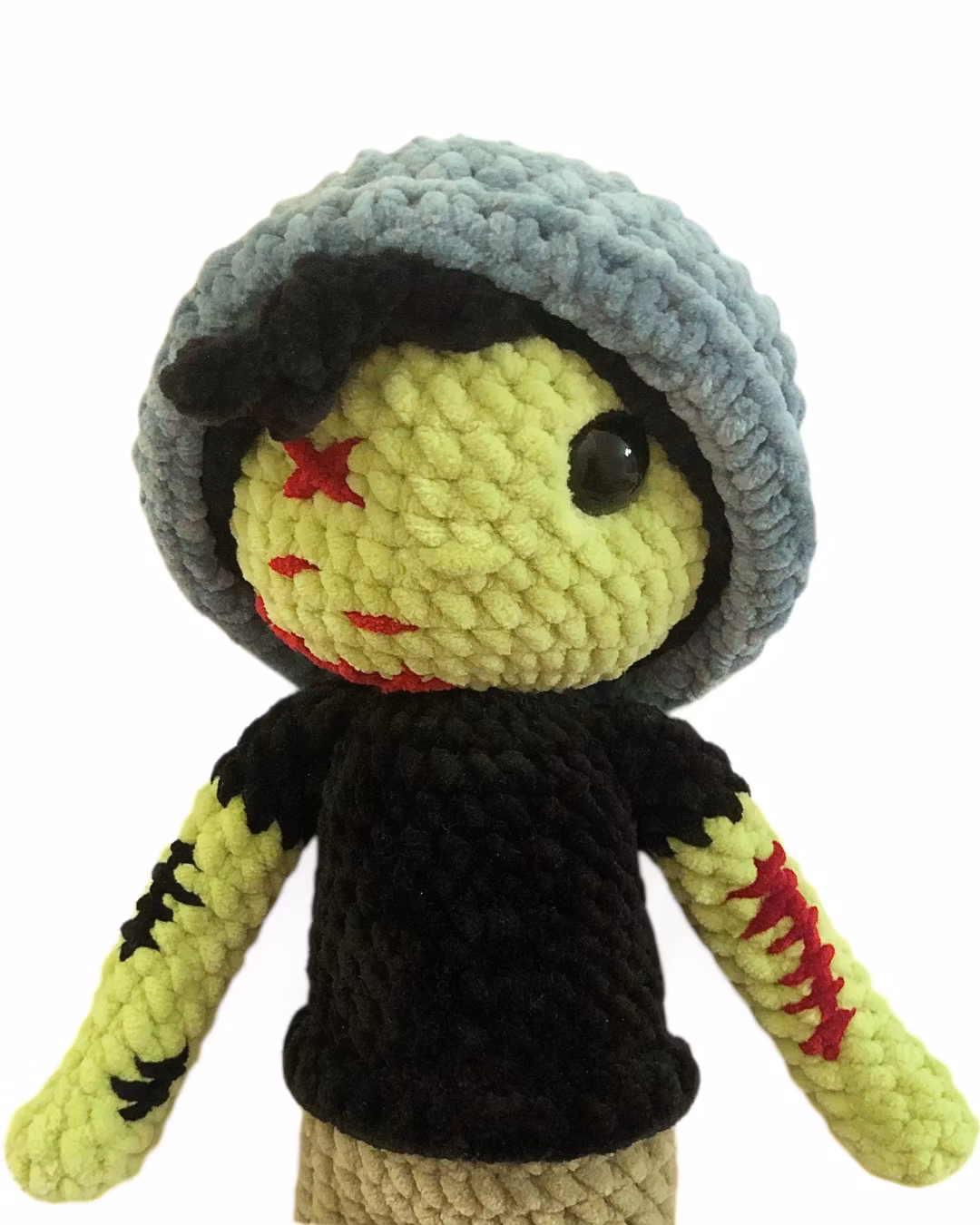 Ange ”broderade ögon” i meddelanderutan i nästa steg (kassan) för att få produkten med broderade ögon istället för säkerhetsögon. (Under menyvalet ”Babyprodukter” kan du se bilder på hur virkade produkter med broderade ögon ser ut)