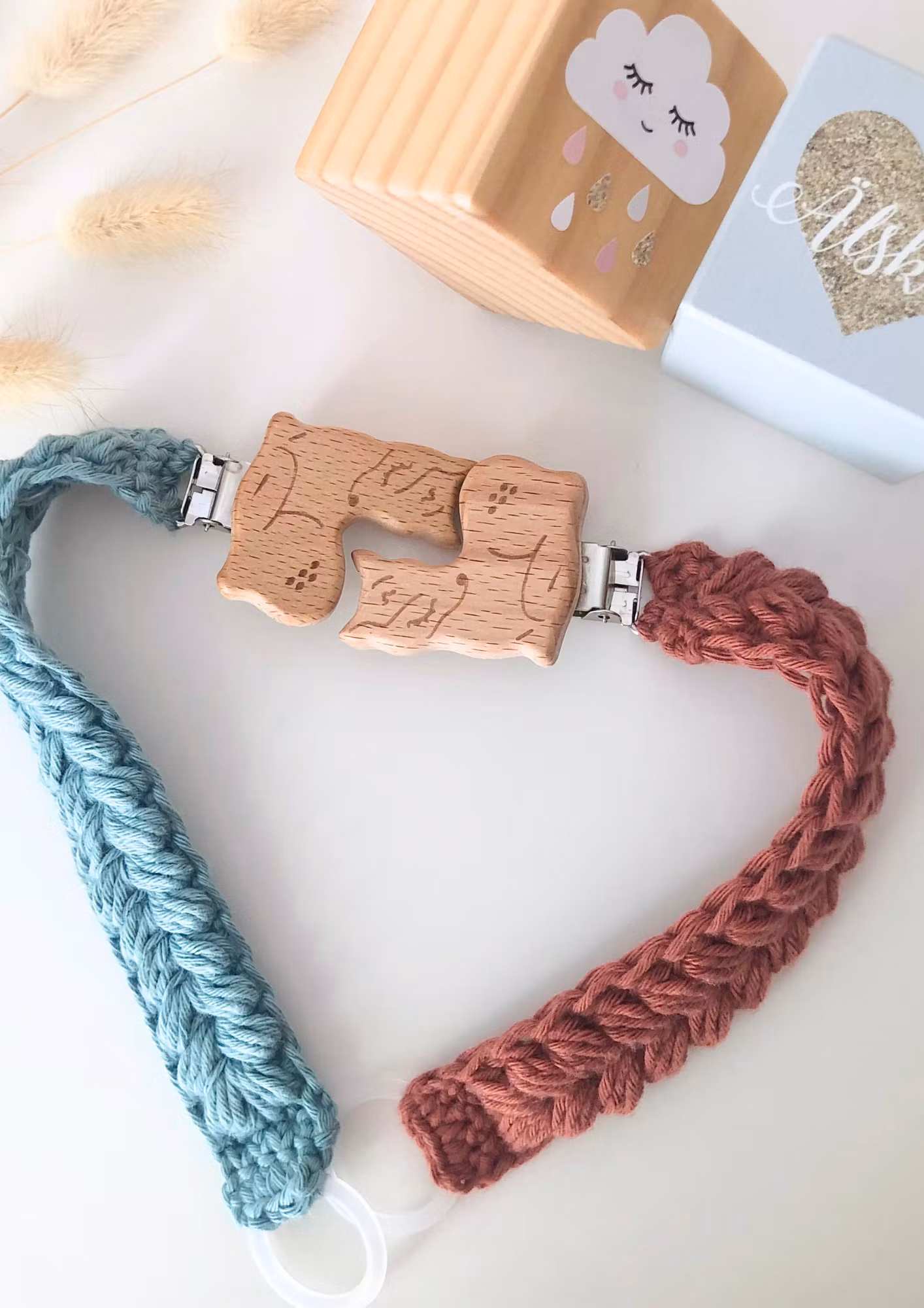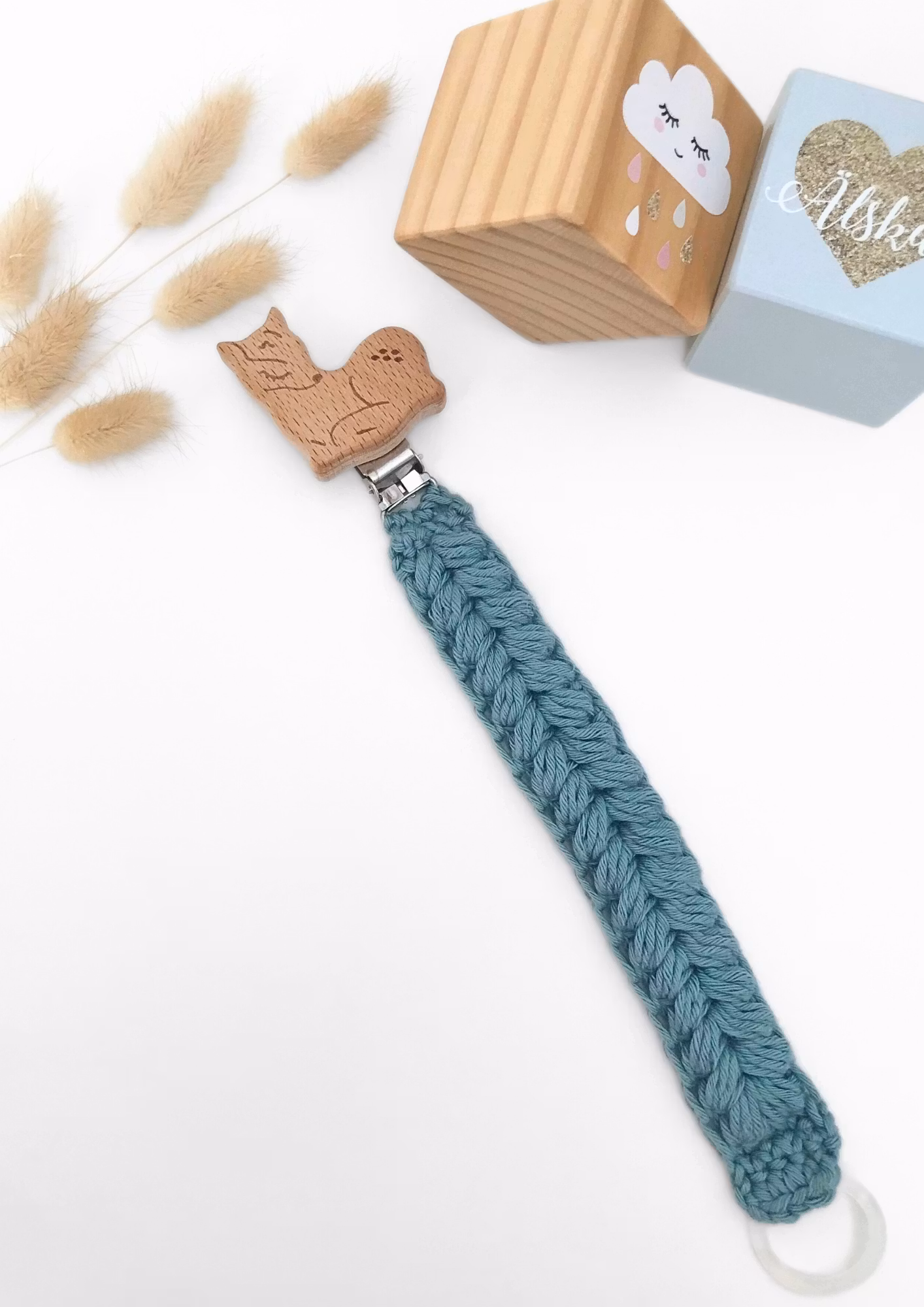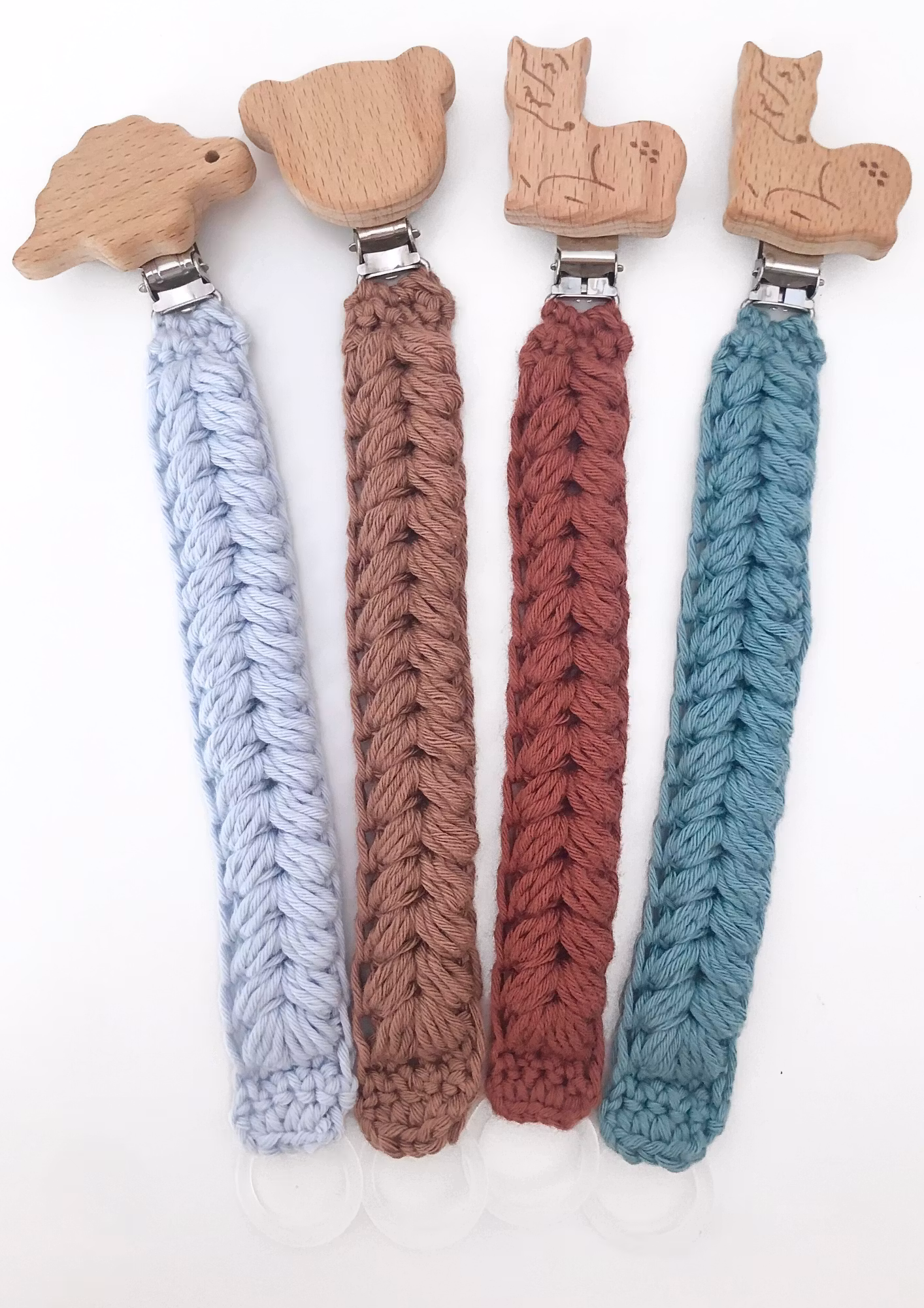 Virkad napphållare med flätad look i mjuk bomull. Träclips - Rådjur