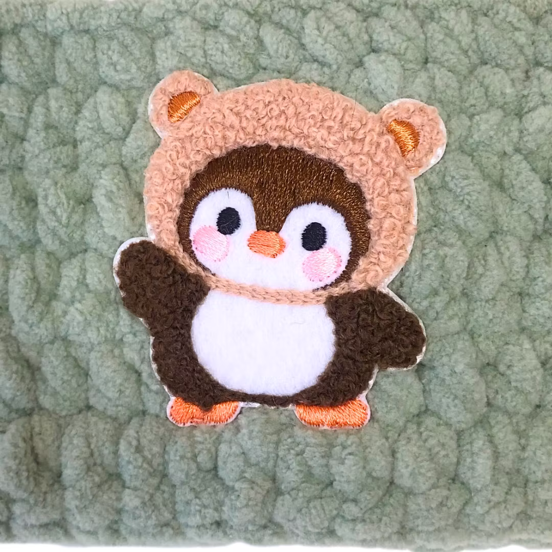 Virkad i mjukt chenillegarn. Grönt.